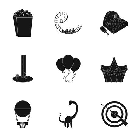 デザインのためのセットコレクションの遊園地モノクロアイコン 装備やアトラクションベクトルシンボルストックウェブイラスト のイラスト素材 ベクタ Image